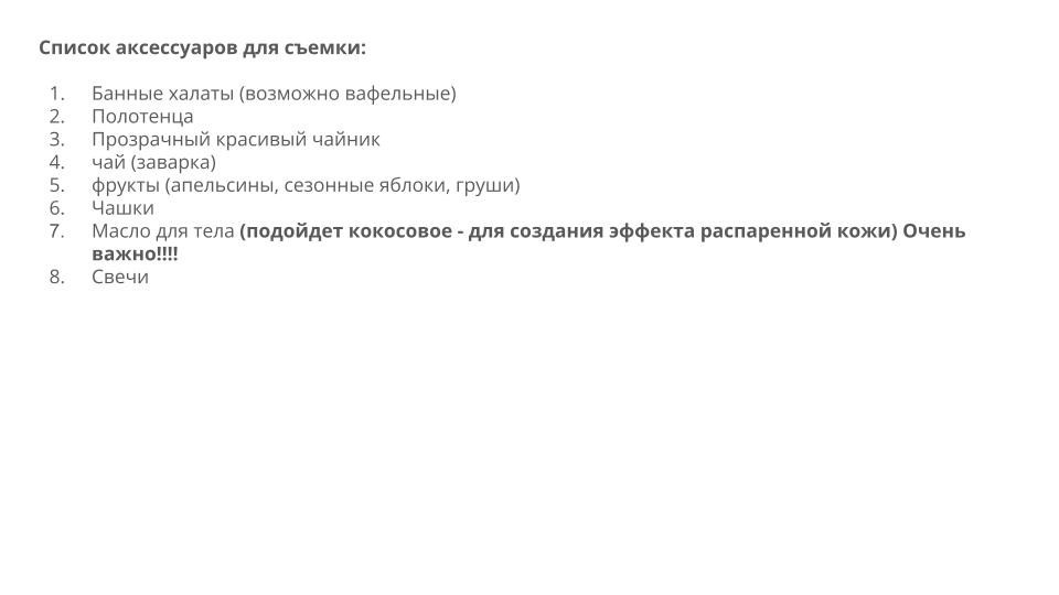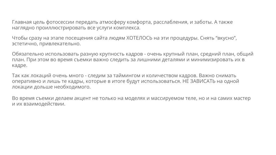 Вот такое ТЗ было разработано мной перед съемкой, чтобы клинт наглядно увидлео, какие именно кадры будут создаваться.